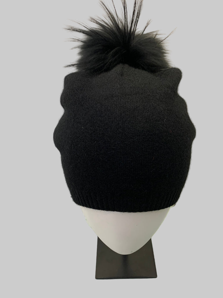 379925 PRENELOVE Evelyn Beanie Tuque avec pompon de fourrure tricot fin