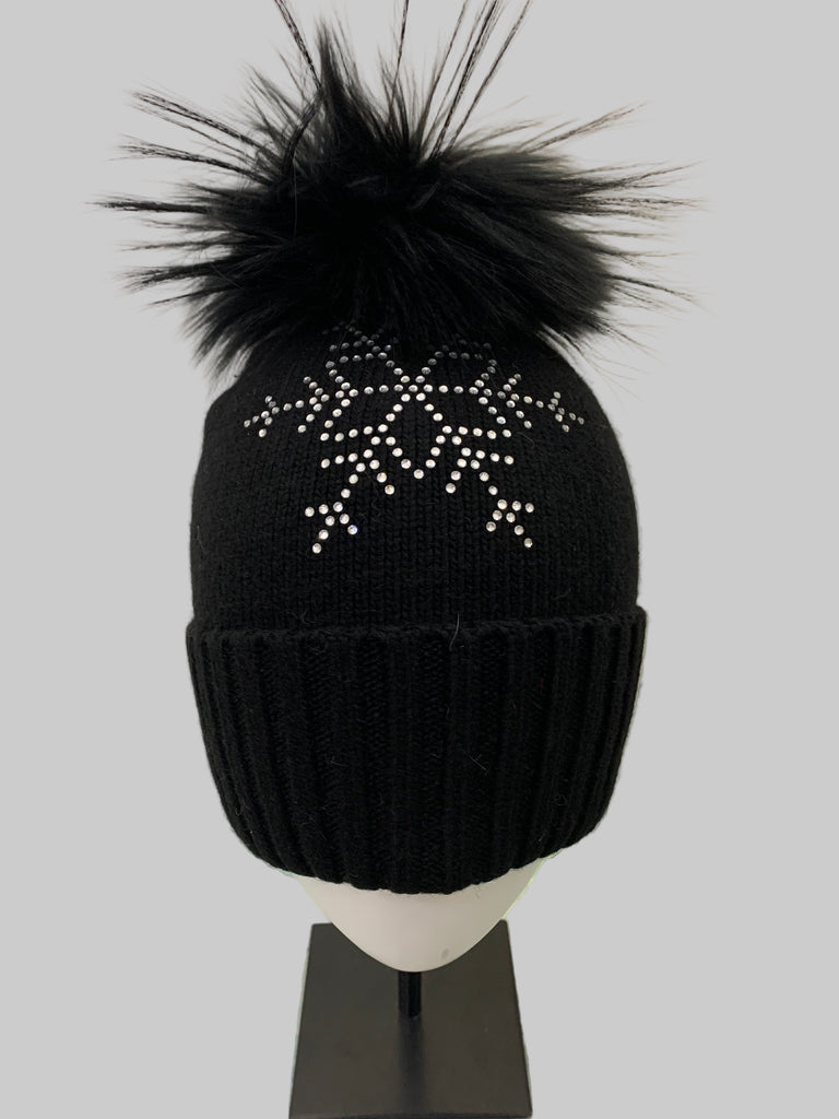 Tuque avec dessin flocon en paillettes avec pompon en fourrure