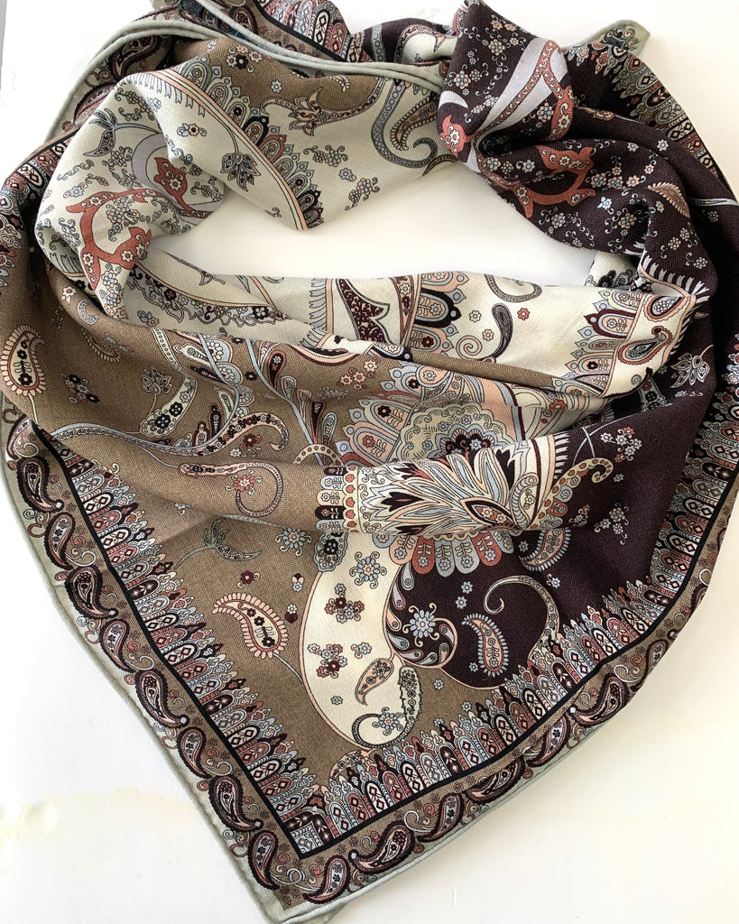 Foulard de soie à 19,8% 25,6 cashmere 54,6 laine 110cm x 110 cm