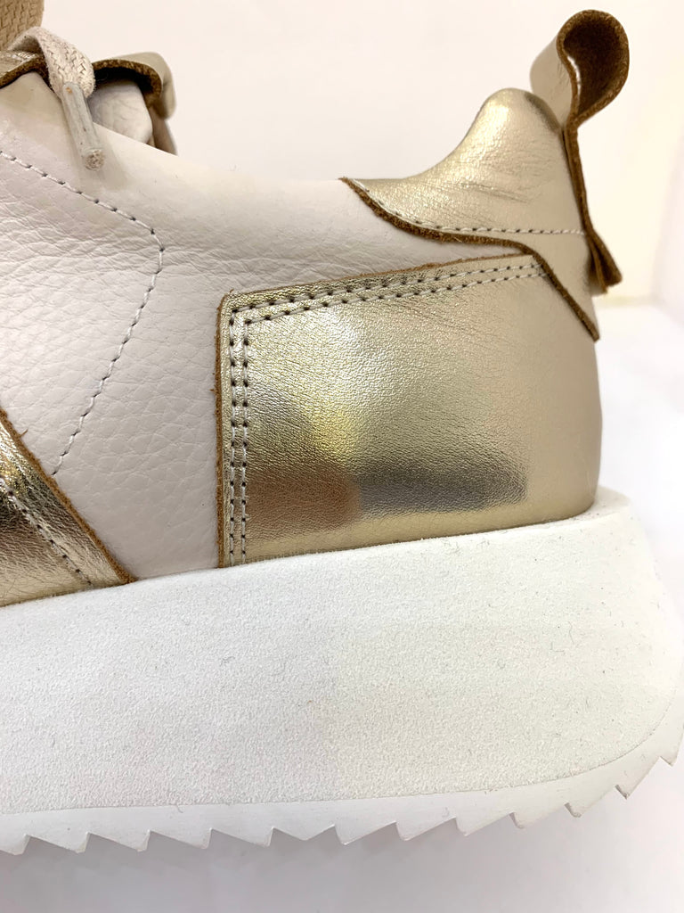 Espadrilles à semelle épaisse dorée et ivoire. Style : KEAGEN GOLD/BONE.