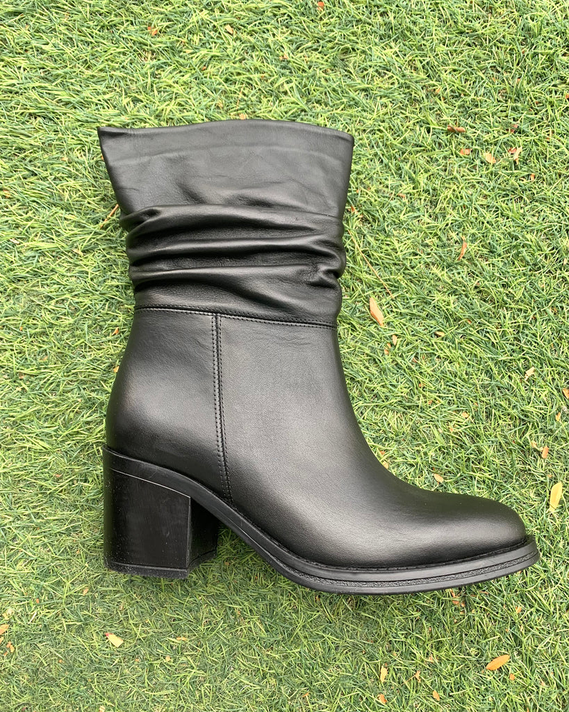 Botte en cuir plissée avec bout arrondit talon 2po 1/2