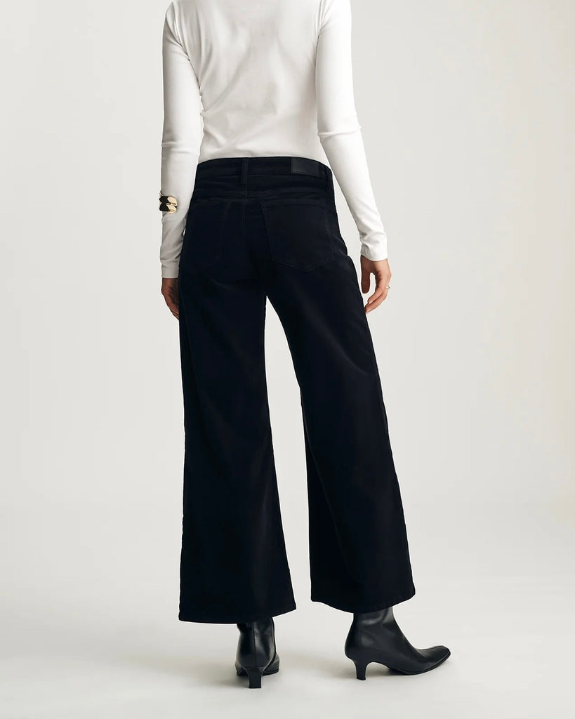 Jean évasé 7/8 en velours noir. Style: PALOMA ; Couleur: BLACK VELVET.