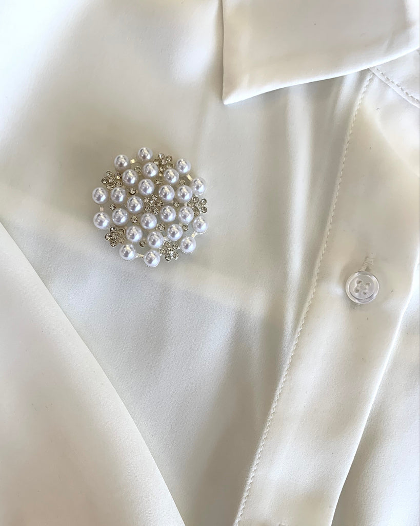 Broche de taille moyenne plaquée argent incrustée de perles et cristaux.