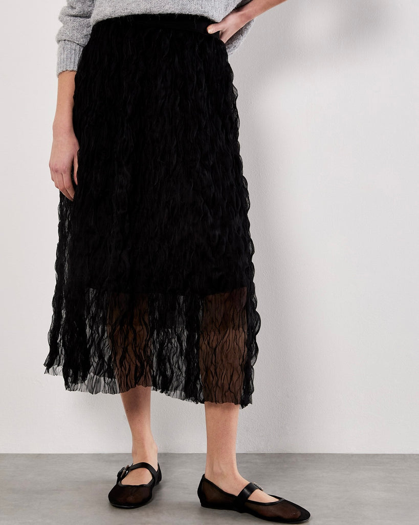 Style apricot wavy tulle midi skirt; x124244; couleur black.