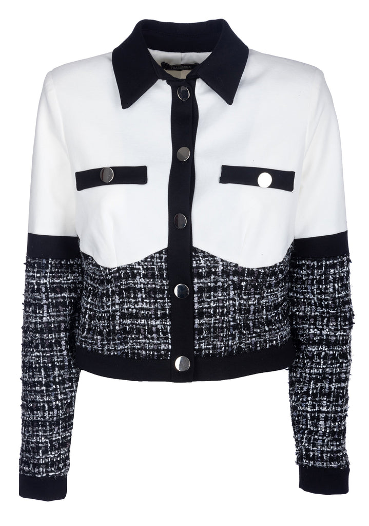 Jacket court effet ouaté blanc et noir avec bas en tweed noir et argent 22WJ1001W59201 col 060 black/white