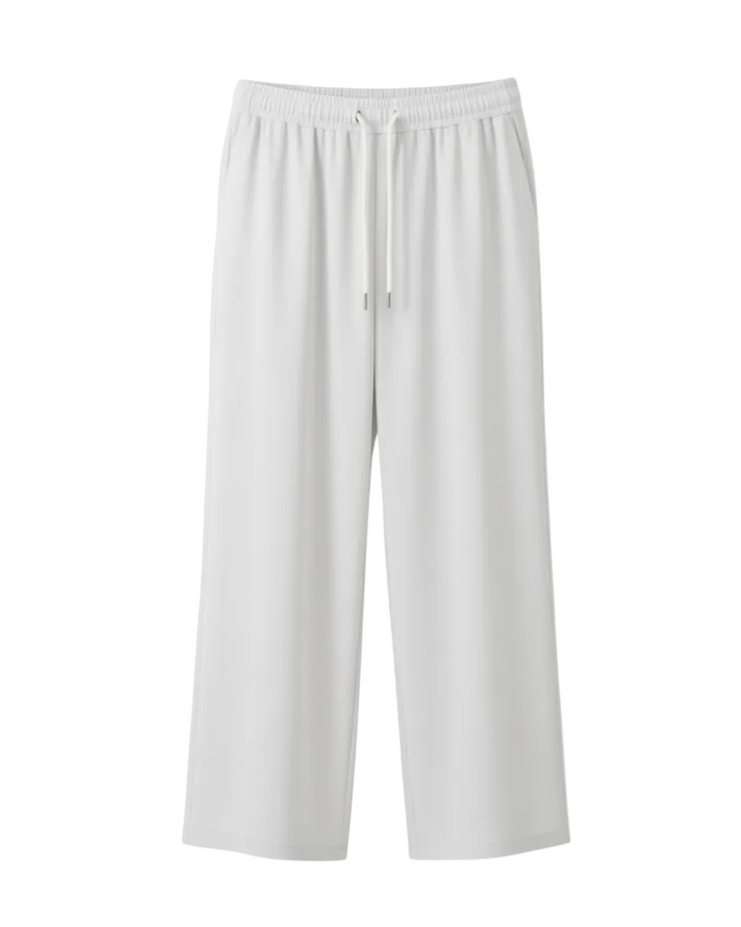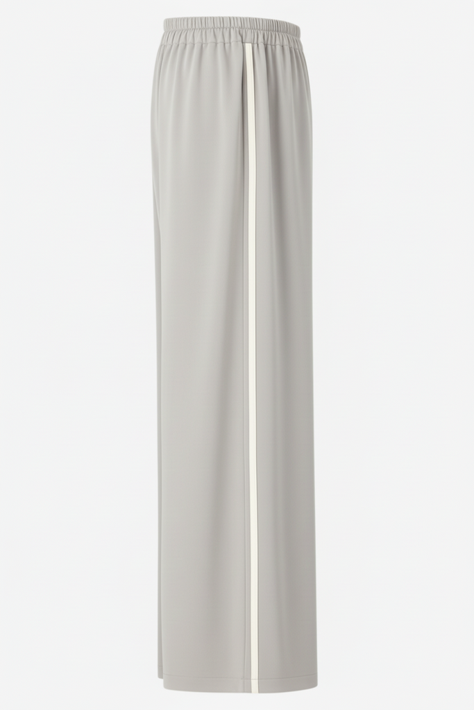 Pantalon style tracksuit coupé droit en jersey sable avec ligne blanche sur côté. Style: Simone P ; Couleur: Sand.