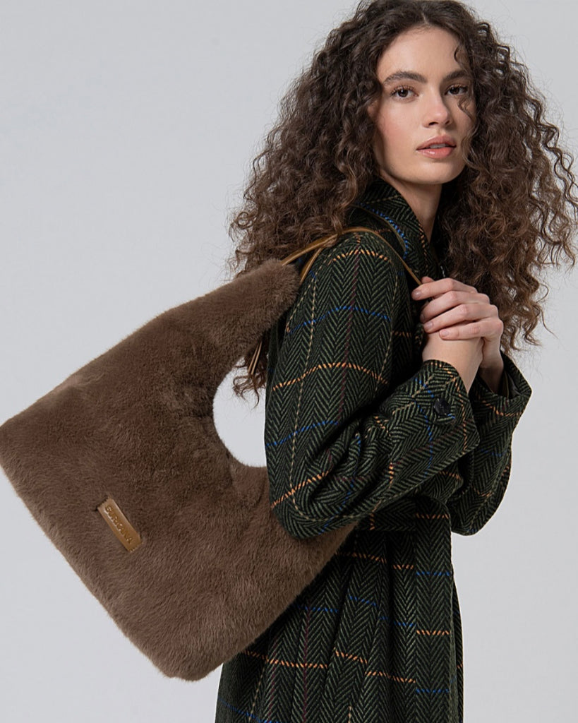 Sac à main en funfur brun avec ganse en cuir brun. Style: 25FURA421 ; Couleur: Khaki.